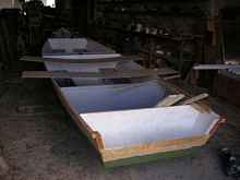Still in the shop - those are seat tops waiting to be installed. The plans show one seat across each cockpit, but I wanted the benches.
