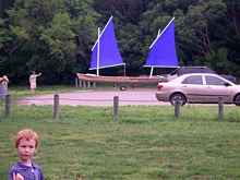 Sailing back to the ramp "wing and wing", she looks odd from this angle.