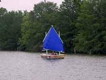 My EP finally hit the water yesterday. It rowed really well with the thole pins, but I need to fashion some collars for the oars. Not much of a breeze, but I did get to sail it downwind a bit.