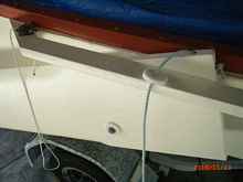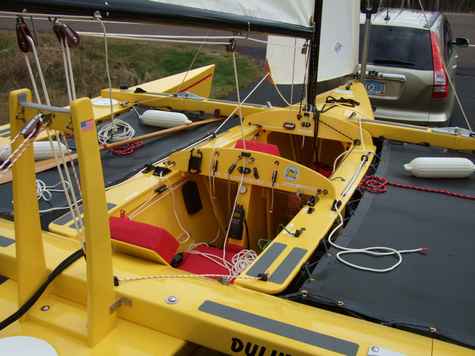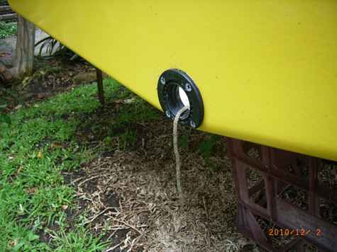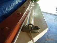 in a jam cleat on the gunwale well aft of the leeboard. This shock