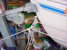 In a discussion about anchoring on the Trailer Sailor Potter Forum, Lewis Baumstark, owner P-15 # 2312, told about the anchoring system he had developed and was using on his Potter. Lewis's system is very simple and requires the purchase of only one large Carabineer.
