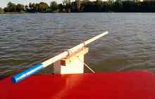 This past weekend we were at the Lake Pepin Messabout. I had some really nice compliments on the tiller we have on our PD Racer #462. My wife, Sandy and I, brain stormed this tiller. I would like to share the idea and a couple photos with you. It is a telescoping model easily made with a 1" wooden dowel 4' long. We screwed 2 eyebolts into the top of the rudder head that accepts the dowel. You pull the tiller forward for the long version, or push back for a shorter version. I"m sure this can work for many different models of boats.