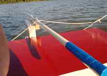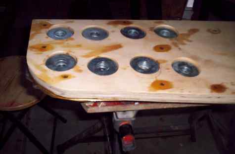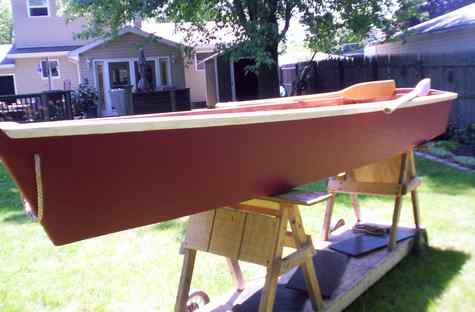 What I did with the rudder was to cut 2-1/2" holes, put a thin layer of epoxy in and let it harden and put washers in more epoxy flush with the wood. To get the weight right I filled a kiddie pool and put washers on until the rudder went down on the bottom end. With the rudder being a inch thick and the rudder laying flat in the water & vertical, it will work when it's on the boat. I know its not what you would call the right way BUT. The last picture is a the Fishermans Skiff I just finished.