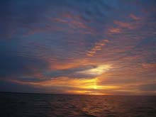 A spectacular sunrise over the Everglades marks the end of a night under sail.
