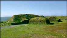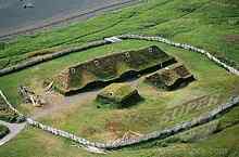 Overhead view of the reconstructed Viking settlement of L'Anse aux Meadows, Newfoundland