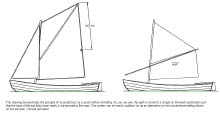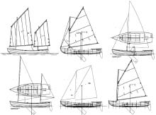 • Knockabout rig with both balance and standing lug mainsails.