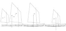 As an example, here is a sketch showing my Periwinkle design with six different rigs, all of which use the original set of mast locations, and most of which use the original main mast.