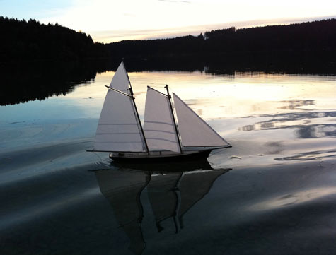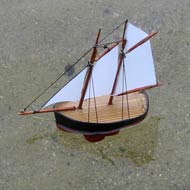 This was a fun`challenge’ principally to set minds thinking, firstly about schooners (a type of sailing boat dear to the hearts of many) and secondly for some to prove that it was indeed possible to `go for the jugular’ and build the smallest ever model schooners that could sail. Harry of Hamilton East in New Zealand who built the little scow certainly did. Well what now? Maybe someone should form the Little Sailing Schooners of Planet Earth Association, keep track of these forerunners and promote the `think small’ Schooner message, perhaps even seek some space on an existing website for reflecting and remembering what turned out to be `possible, and encouraging others!’ Whadja fink? (Good name for a model sailing ship that!)