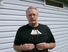 Harry Duncan with smallest free sailing schooner