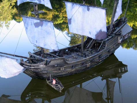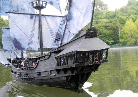 Black Rose in a morning mist (photos by Harry Duncan) When I had the idea for a two-footy pirate brig based on a `legend’ that did not exist, I had no idea that after the article appeared in Marine Modelling International it would attract the interest that it did. Largely designed and the model built by my New Zealand friend, Harry Duncan, the wonderful drawings of his included in the article attributed to the interest of modelmakers in Britain and elsewhere. If you didn’t read the article in the November issue of MMI then a brief intro here might be useful and a bit of fantasy often helps in the painting of a picture of what it was like in pirate days. The Captain and owner of the 8 gun brig Black Rose (legend has it !) one Imogene Flora Rose was a rum-drinking pipe-smoking muscular woman of African ancestry claiming to have blood lines through slave inter-marriage that traced right back to Catherine Hagerty, a notorious pirate who sailed Pacific waters and plundered ships in the early to mid 17th Century. “ARRRGH !” Imogene Flora Rose would probably say, accompanied of course by a verbal barrage of the foul expletives she was known and feared for.