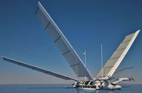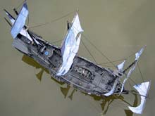 Many who indulge in cruising the internet will have come upon and feasted their eyes on the photograph above seen on at least four different websites accompanied by virtually zilch in the way of information. `Created by a French designer’ (it was said on one website) after which I was unable to find the gentleman mentioned by name anywhere and I deduced that it could even be a hoax - a model skillfully made by someone wild on imagination and equally skillfully implanted on a fake photo using Adobe Photoshop or some similiar photo-altering system. Someone who drew my attention to it is convinced that this great `whatsit’ is in fact an alien spaceship with both flying and fast supersonic sailing capabilities. (Hey, don’t scoff at that, I’ve come upon some mighty strange findings while searching Planet Earth for the smallest RC model schooner! And that was just on our planet!!!) The jury is still out, but my belief is, it is more likely to be one of the main combatants secret boats for the next America’s Cup which has become weirder and weirder in boat design and is well on the way towards being stuffed up for ever and ever! The craft will `fly’ one leg and then `sail’ the other! The third leg? Well, the hull must submerge completely and the `above bits’ emulate a duck flapping its wings for propulsion! If it waddles when sitting still on the water and looks like a duck…. It gets curiouser and curiouser!