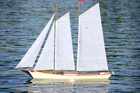 It seems like just day before yesterday (well, a mere handful of years anyway) since Will Lesh of Tippecanoe and I were discussing a schooner model for his range of kit-built sailing yachts, now I see more and more of his T47 schooners appearing in his website of owners photographs. The latest to appear is a nice build by Wayne Hoppe of Wisconsin, USA shown here which for a schooner fan such as the writer is wonderful to see. In my humble opinion the schooner (irrespective of how many masts it carries) is one of the prettiest and most graceful types of sailing boats you will ever find. Schooner models when sailed on ponds are `attention grabbers’ and it is nice to see a little bit of `deck detail’ on Wayne’s schooner in Wisconsin. He has nicely customized it and it is a pity that more people don’t do so with theirs. A flat and un-adorned deck lacks what I call `the realism factor’.