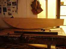 When bending the bottom, use a jug of hot water to pour on the 6mm plywood to get the desired curve. Some pine and softer plywood’s will need very little in the way of assistance to bend. Some hardwood ply will crack if not bent slowly and patiently with wetting out the panel and fastening curve alternatively from side to side until it needs to be attached to bow/transom spreader. Failure to read this will more than likely end up sending you to the lumber yard for more plywood!