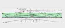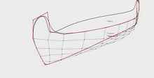 A scanned drawing used as a background image in Delftship. The dark lines show my modeled version of the kayak.