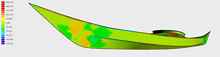 Example of Delftship’s “gaussian curvature shading” tool used to aid fairing.