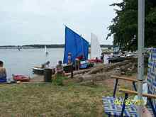 Larry Haff with his Glen-L Minuet "Sea Snail" (I nearly built one five years ago). Larry's trailer axle buckled as he arrived ... and again heading home ... "At least I got in some sailing". |