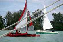 PenguinMan and OceanDiva on thier tandem Hobie Adventure Island and John Bell on Alobar circle, waiting for the swing bridge to open at Gasparilla Sound.