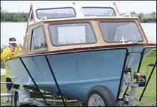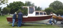 John Douglas also had his half cabin constructed from 'Build a Boat' plans, and showed his incredible workmanship. The strip planked flare on the bow was a work of art.