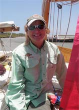As the day went on and we approached the Mansfield Jetty, the wind increased, thus increasing the size and pattern of the swells, probably running about 5 to 7 feet. It became apparent that we were on the verge of being out of control as we were surfing down the waves (11 knots!!) so we decided to take the jib down and put up the smaller staysail. This staysail is actually the sail from a windsurfer that Chris had salvaged and I had done a little sewing on. Chris had modified our boat to have all the lines running aft so we were able to take the jib down without leaving the cockpit. However, the lazyjack hung up on the gaff jaw and I went forward to try to release it. I was too short to get it loose so I returned to the cockpit and Chris went forward. He was able to get it released and, one second the boat was under him and the next second it was not. Man Overboard! This is the really scary part. He never let go of the boat when he fell in so that was a good thing but when he tried to hoist himself back onto the boat, he couldn't manage it. I radioed the other boats to alert them of our situation and asked that they stand by in case we needed help. Meridith had popped up from her bunk and, while I held the boat into the wind, she took my knife and quickly cut the swim ladder free from its storage spot, hooked it onto the side of the boat, and Chris was able to get back in. She mentioned to Chris, "Well, at least you had a chance to pee." and Chris responded, "I was so scared, I forgot to." We all had a good laugh about that and then we set about getting the staysail rigged up.