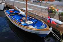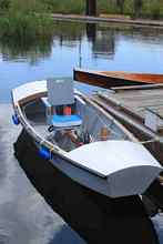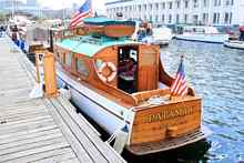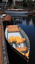 The lapstrake dinghy aboard the Lake Union Dreamboat ZELLA C.