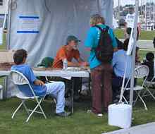 Tall Ship Master Wayne Chimenti, who runs the Community Boatbuilding Shop affilated with the Northwest School of Wooden Boatbuilding in Port Hadlock WA on the Olympic Peninsula, participated in the knot tent.
