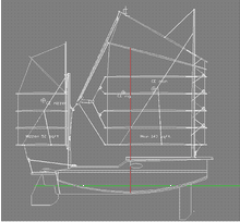 all the way to the main mast and is canted to the gunnels which