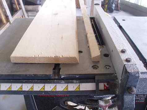 I've read and reread Andrew Linn's (www.WADeRweb.com) how to on making coopers mast and cringed each time hopping for inspiration on how to do it safer. Andrew's plan was for cutting all the sides first then cutting the angle to each side. This gave very thin strips to handle and requiring three cuts for each strip. I didn't have Mr. Scheidaman for 7th grade shop but mine was just as tough. I'm not for giving blood sacrifices to the tool god's; they get enough as it is. I now think I've got IT! We start with a 1 x 10 pine, Douglass fir or whatever you have, 10 to 12 feet long.