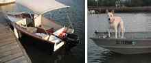 Patching up, and refitting in McClellanville, SC In S. C. all boats come complete with dog. |