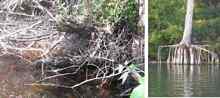 You see that? What is that? Is that a croc or a log? Low water table = exposed roots. |