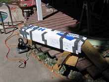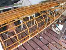 It is a proud day when you take it off of the strongback. What I didn't get pictures of was a lot of measuring, marking, bending, placing, clamping and gluing. Did I mention that there was a lot of that?