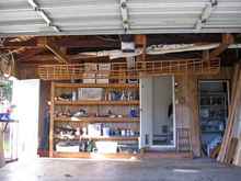 By the time I was ready to varnish the whole thing the weather had become too cold and wet to varnish so I hung it up in my garage like a piece of art. It really looked pretty cool up there.