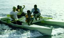 Final: boat number one is almost 16 years old. It cruises with two at around 5 knots with a 2.5 hp engine, consuming less than ½ gallon of gas per hour. The original wide deck version was great for four people and stuff. The narrow version is faster, and there isn't much room for people or stuff. It does row. The wider version had to be paddled. While I like the calm waters, the newest version has been out in 2-3 foot waves. Gets kinda wet, but gets you home. I seal under the decks so under deck splashes can't reach the cockpit area.