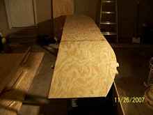 I started by making the two side panels for the boat. I drew the Lewis curves using a six foot long board with a nail in one end and a pencil hole in the other.