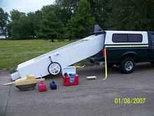 This is what it looks like loading the boat into my pickup truck after an outing. |