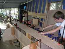 Gluing together huge plywood panels with