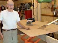 Construction began in July 2009 when the Meranti marine plywood arrived. Cutting parts was the first order of business, starting with the bottom and frames.