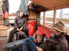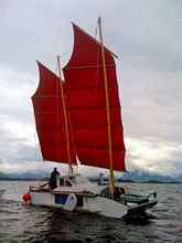 Anke and I have just completed our first season's cruising SLACKTIDE in SE Alaskan waters. She's a 26' x 7' x 1', engine-free, junk ketch-rigged sailing barge of my design (plans and more pics at our website). She's not one of those curvacious barge-babes, either, but a four-square and unrepentant box barge.