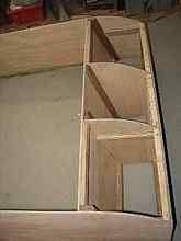 Placing supports halfway up the inside of the forward compartment, and then covering the opening with plywood would provide a fixed volume that he could fill with expanding foam. This deviates from the plans, but does not, in any way, detract from the overall integrity of the design. Only a few extra pounds were added to the module, and probably will provide even more structural strength than the original design. Photos on the following page shows the enclosed Forward Module.