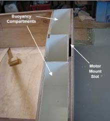 Another mention is the necessity for sealing the plywood in the buoyancy compartments. As noted, Michael chose to use a good quality paint, and it not only seals the wood, but looks good too. I usually recommend Thompsons Water Seal, as it penetrates the wood and adds an extra measure of moisture protection. It does have a down side, and that is it must be allowed to dry for 48 hours after application, and then all treated surfaces should be lightly sanded, if a finish is to be applied, such as paint or varnish. Otherwise, the Thompsons may prevent the finish from sufficiently adhering to the hull surface, and may peel over time.
