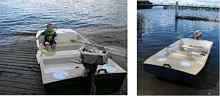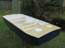 Bottom: The finished boat is 8 feet long and 4 feet wide, with 18 inch side panels. The light interior gives the boat a spacious feel, and room for 4 people is evident.