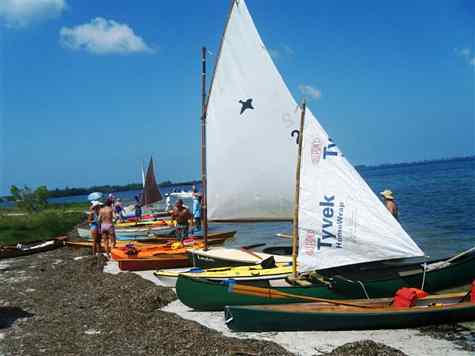 We had a perfect messabout today. Great weather, great water and an especially great group of boatnuts. We had 18 or 20 boats and a whole bunch of boaters. I'm finding that beer drinking kayakers are as much fun as beer drinking sailors, maybe more so cause they have more money to spend, none of those expensive sailboat things. Laylah boat was a hit, everyone had a go in her. These "Cortez" melonseeds continue to impress me as being the best small boats in the world. You can't hurt them, they won't hit you in the head with anything and they're fast and responsive. Everything you could want. Of special note is Oreo, Kathy's toy Aussie Shephard. He's a fun boat dog and this is as big as he'll get. The two beautiful bright pointy kayaks are the last two that Sam built. Pat and Reesa make them fly with no effort.