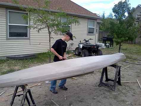 Here are some pictures my son Jamie sent me from Utah of his neighbor building a bunch of kayaks for a boy scout group. I think he said it took them a week to build ten of these things, look pretty good to me.