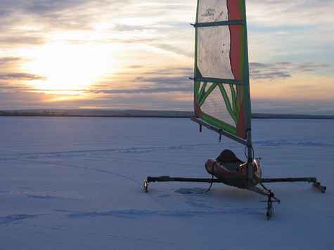 It's Sunday. Wind predicted. Lake might even be frozen. Up early, light the fire. Cross the meadow and fire up the stove in the shop. Begin gathering up the scattered pieces that turn the little Fed landsailer into an iceboat. Remember how to fit it all together. Sharpen and align the blades. Strap her onto the trailer, and head west.