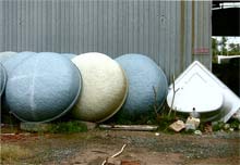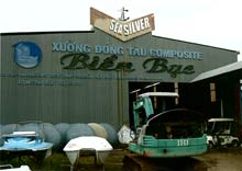 In Nha Trang I stumbled across a fiberglass shop and piled outside - fiberglass coracles! Our driver got me inside, a Robb White nostalgia moment, not the sweet smell of 1/2 pint to the gallon old outboard exhaust, but the strong stink of polyester resin. These guys were busy. Coracles, bath tubs, inboards, outboards, wave piercing cats and tri's, it was like South Florida 40 years ago. We can make anything! I saw the mold for the coracles and found a finished product out back. Note the wide molded gunwale with molded in pad eyes. Somehow gunwale just don't seem right here does it.