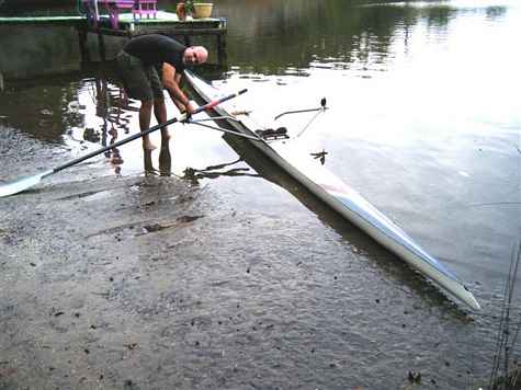 In addition the bottom front has a layer of kevlar Laylah and I put it (#8) in the water and pulled the plug. About four inches of water came in then stopped. If we had been sailing we wouldn't have even slowed down. I couldn't turn it over in the water so I put the plug back in and bailed water into it.