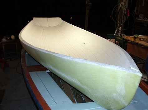 In the end we took him home, I cut him in half right down the middle, spread the halves apart by two feet and I am just now in the last stages of reassembling him as a wider boat. It has been a completely engrossing process that illustrates the unique possibilities of plywood, the pitfalls lurking for the "intuitive" builder and, hopefully, an encouragement to others.