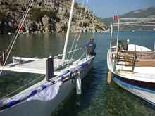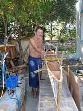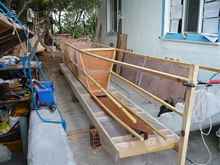 Here I started in Autumn 2009 to build a bigger proa for coastal cruising. My "boatyard" in the garden was very small and always "open air". Hence I designed a boat for fast and simple building of plywood and GRP. But nevertheless, it took about a year to finish it. I also built, by myself, a 7m mast from GRP and two 7m spars from carbon. This part of the build was very interesting for a self builder. I can report more details if requested.