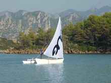 The first sail trials showed that the boat is well balanced, and the rudders are working properly. Shunting the "big" sail was a little problematic, and there I think about a rail guided yard for next season Also a small outboard will be added for coming back if the wind dies (paddling is possible, but very laborious).