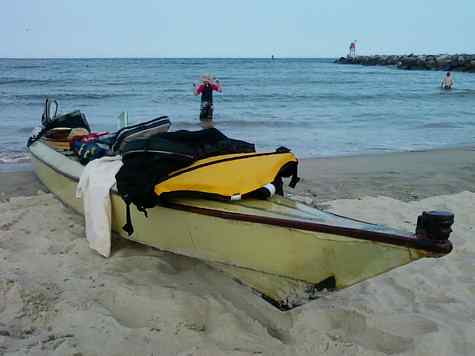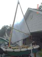Inverted on deck, gives air and protects from rain the dinette and front cabin ports. Tows very well. Best of all, is very dry, much drier than an inflatable dinghy, and the full bow rides high even crossing the wake of big motor yachts. Please feel free to use the photos if you like. Here we are in S. Raphael, South of France.