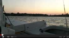 Saturn catamaran by Woods Designs racing in a regatta in BC Canada. Note 13 knot+ speed off wind. The boat with spinnaker in the back ground is a Santa Cruz 52. We caught them up.